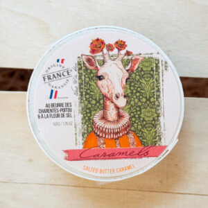 Kleine salzige Butterkaramellen, die einzeln verpackt in einer charmanten Spanholzschachtel mit Giraffendruck sind. Ein absolut hinreißendes Geschenk mit einem wundervollen Inhalt.
