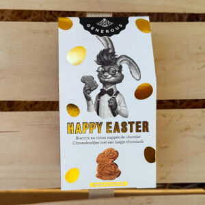 Bio-Butterkekse in Häschenform aus glutenfreiem Buchweizenmehl mit frischem Zitronenaroma. Auf der Rückseite mit Zartbitterschokolade überzogen.